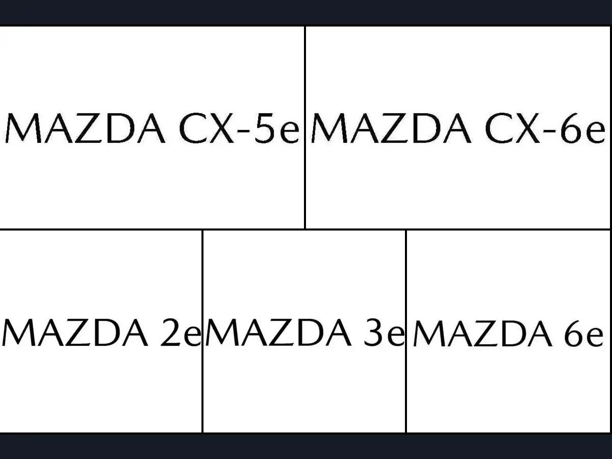 قدمت مازدا طلبات تسجيل لخمسة أسماء جديدة: Mazda 2e و Mazda 3e و Mazda 6e و CX-5e و CX-6e. بالإضافة إلى طراز EZ-6 / Mazda 6e، الذي تم إطلاقه بالفعل في الصين وأوروبا، تشير هذه العلامات التجارية الجديدة إلى توسع محتمل في مجموعة طرازاتها القادمة. ومن الواضح أن الحرف "e" في جميع الأسماء يدل على أنها ستكون سيارات كهربائية.