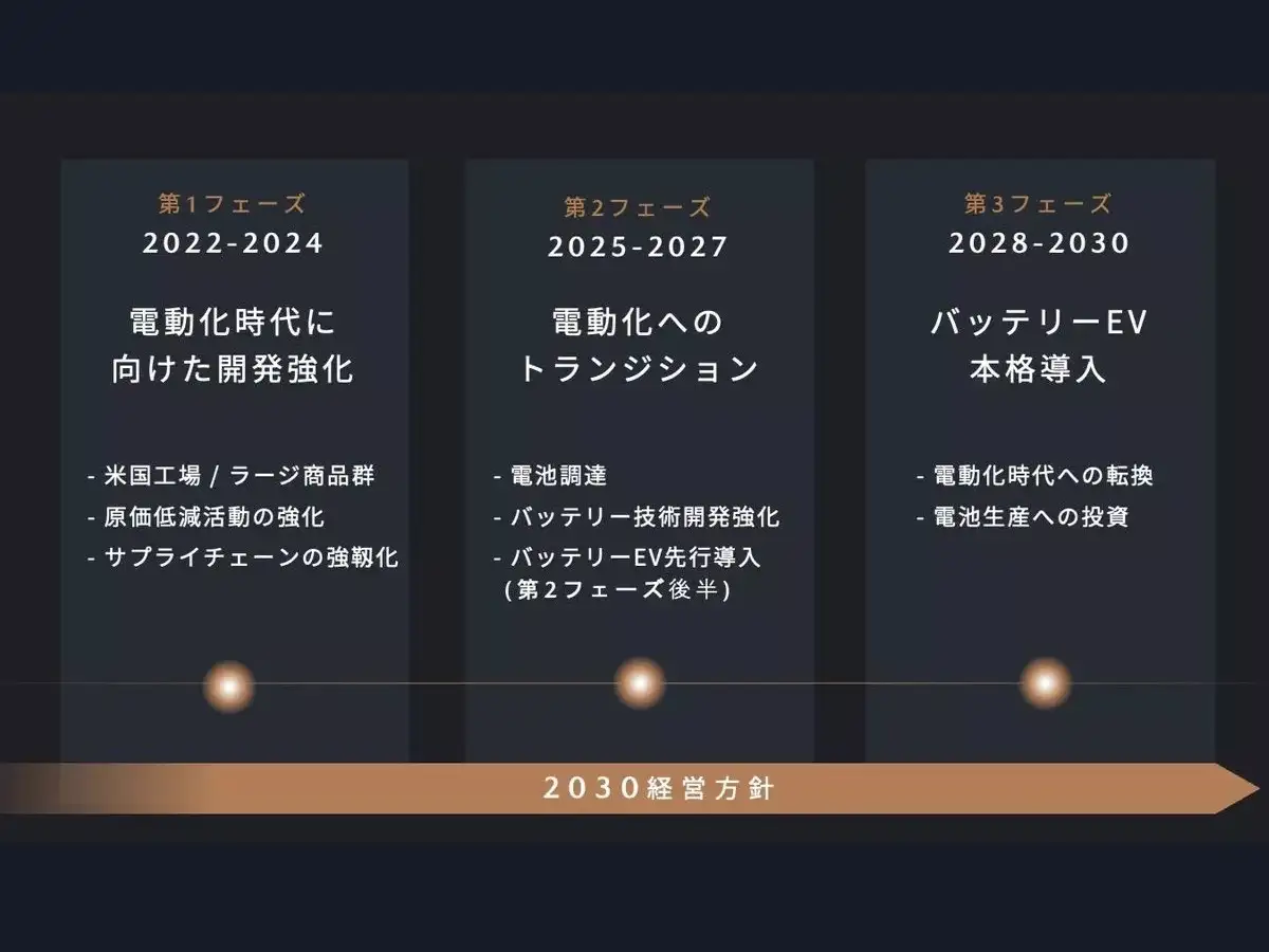 على الرغم من عدم توفر المزيد من التفاصيل حول هذه العلامات التجارية، فإن خطة إدارة مازدا لعام 2030، التي أُعلن عنها في نوفمبر الماضي، تؤكد أن الشركة ستركز خلال السنوات الخمس المقبلة على التحول الكهربائي وتحقيق الحياد الكربوني. وتنقسم هذه الاستراتيجية إلى ثلاث مراحل: