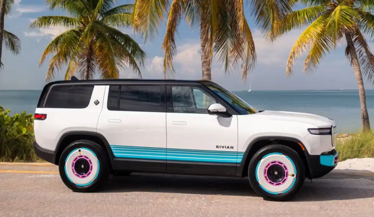 كشفت شركة ريفيان مؤخراً عن نسخة خاصة وفريدة من نوعها من سيارتها الكهربائية R1S، مستوحاة من أجواء مدينة ميامي في ثمانينيات القرن الماضي، حيث استلهمت التصميم الداخلي والخارجي من الألوان النيونية المميزة للمدينة، مثل الفيروزي والوردي الزاهي. هذه النسخة المثيرة للاهتمام تحتفي بثقافة وأجواء ميامي الفنية المعمارية، مع لمسات مستقبلية حديثة.