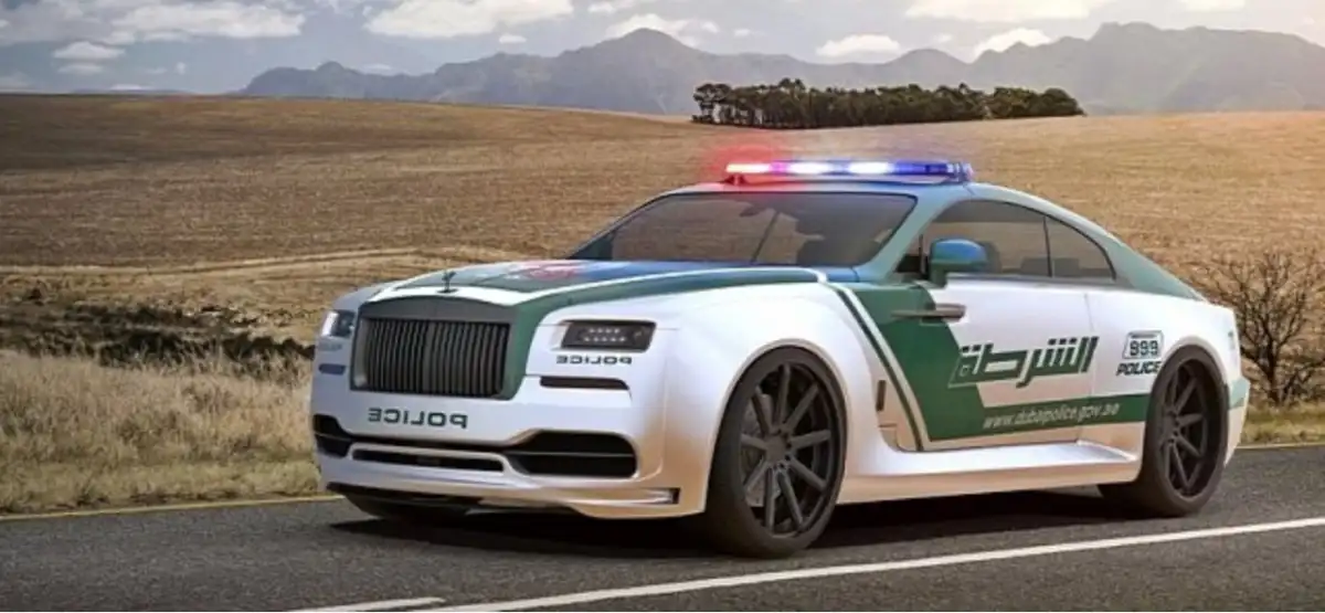استخدام ألوان الشرطة الرسمية (عادةً الأبيض مع الأخضر) على هيكل سيارة رولز رويس فاخرة يخلق تناقضًا بصريًا جذابًا.