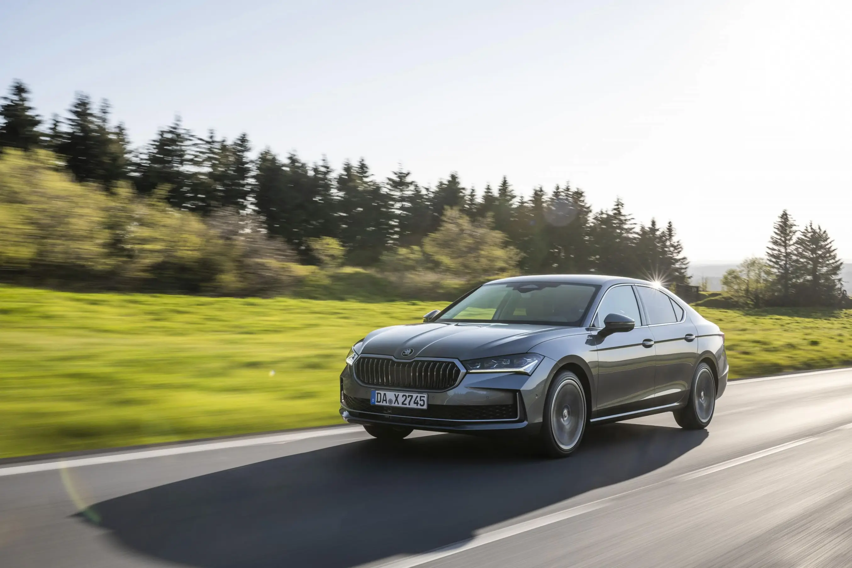 جاءت سوبرب 2025 بتصميم جديد كلياً يجمع بين الأناقة الكلاسيكية واللمسة العصرية. فقد أعادت سكودا رسم خطوط السيارة لتصبح أكثر انسيابية وجرأة على الطريق، مع واجهة أمامية تحمل شبكة ضخمة بتصميم لامع تتوسطها المصابيح الكريستالية بتقنية Matrix LED Crystallinium، التي تمنح السيارة حضوراً قوياً وإضاءة متكيفة عالية الدقة.