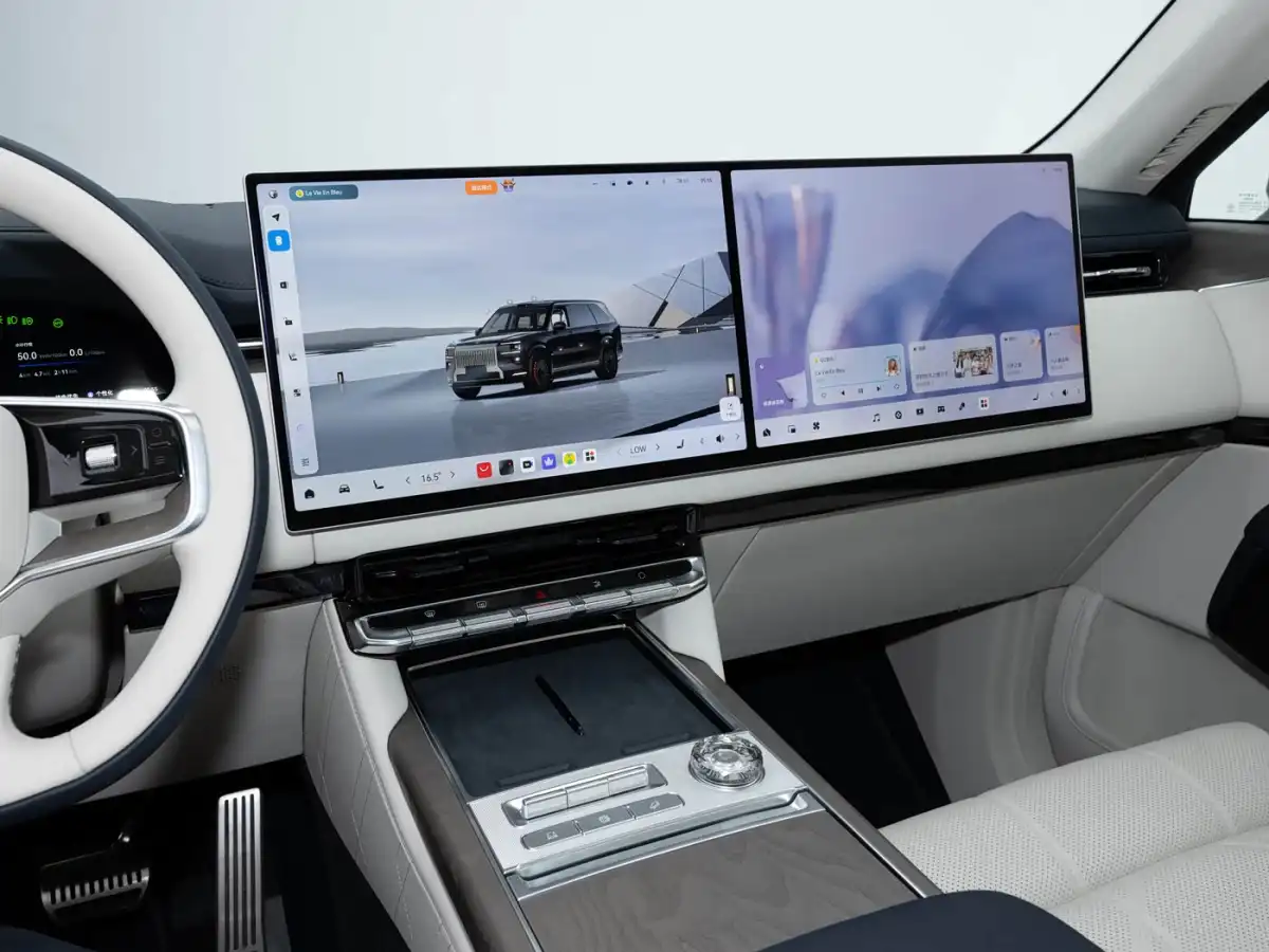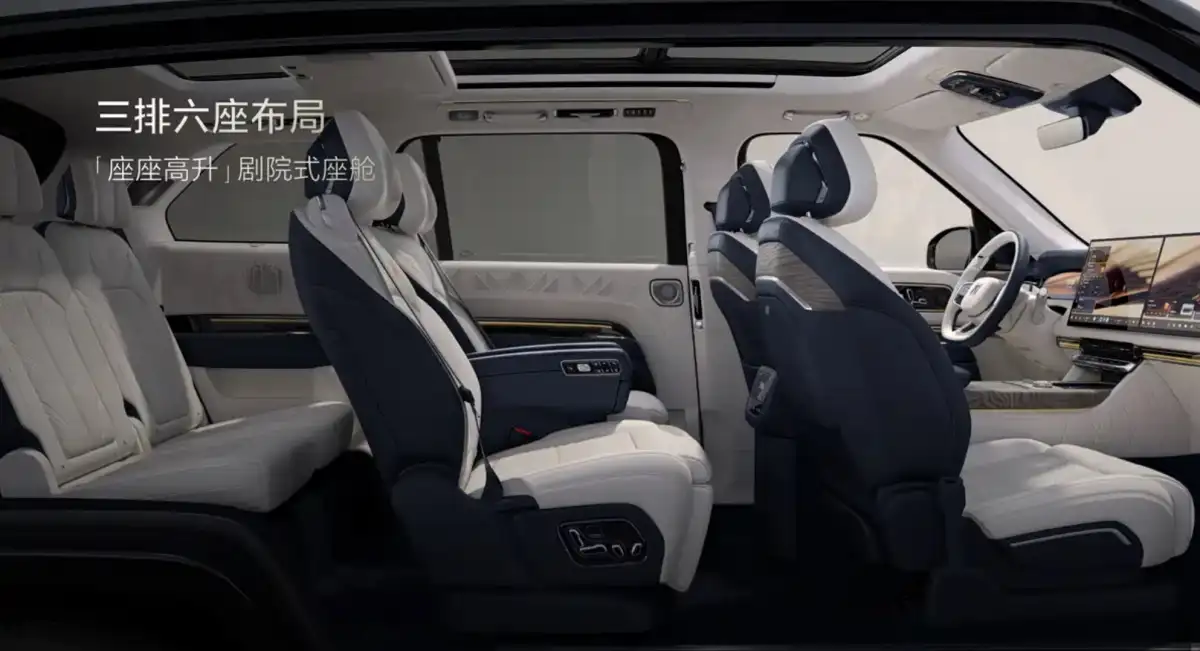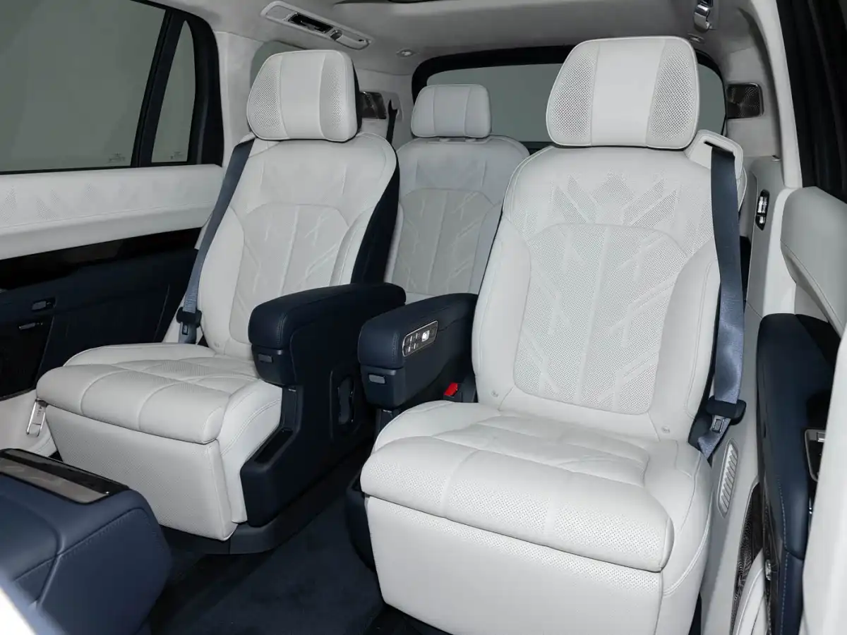 بينما يقدم الصف الأمامي مقاعد فاخرة مزودة بمساند رأس تحتوي على سماعات مدمجة، إضافة إلى شاشة عائمة كبيرة على الكونسول الوسطي مدعومة بأزرار تحكم تقليدية لسهولة الاستخدام.