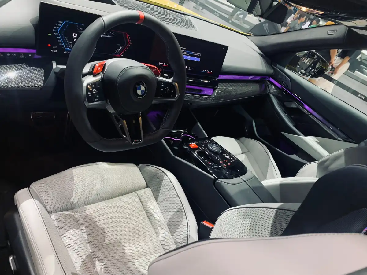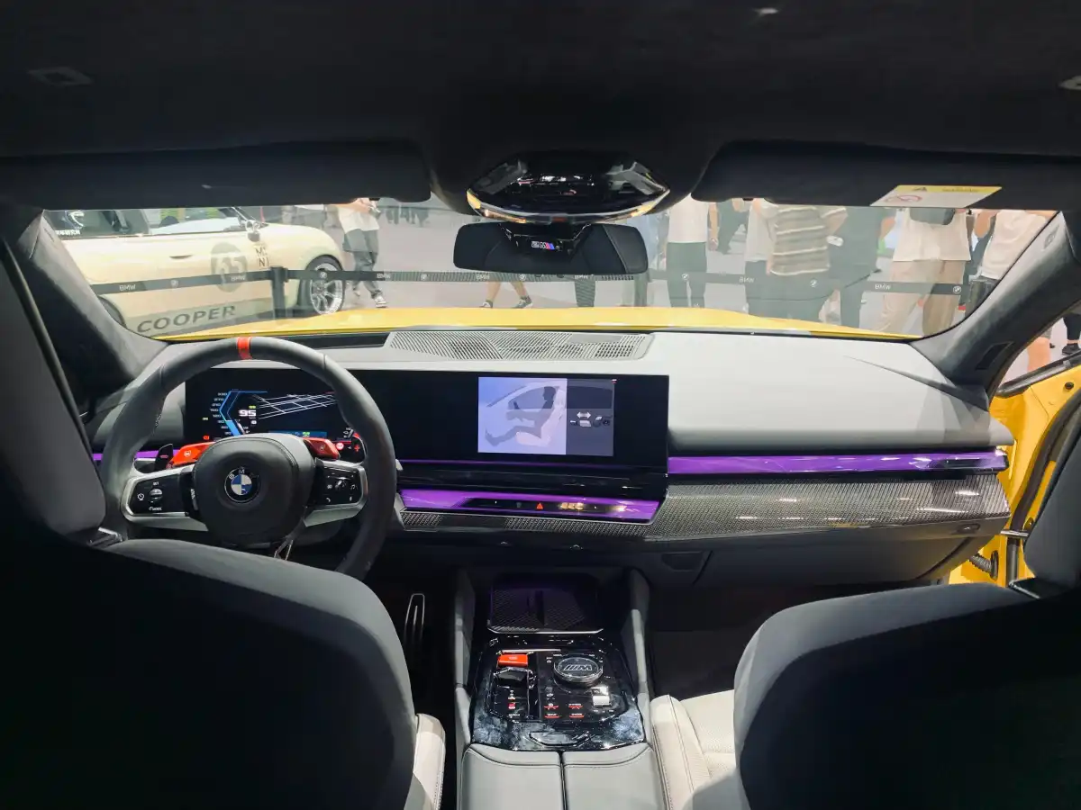 إعداد الشاشة المزدوجة، الذي يتضمن شاشة بقياس 12.3 إنش وأخرى بقياس 14.9 إنش، إلى جانب عرض المعلومات على الزجاج الأمامي، يضفي أجواء التكنولوجيا المتقدمة. يتم إبراز الاهتمام بالتفاصيل من خلال استخدام مواد وألوان متنوعة لتعزيز الإحساس بالرياضية. تم تصميم عجلة القيادة الرياضية متعددة الوظائف للسلسلة M حديثًا لتوفر التحكم في وضع القيادة.