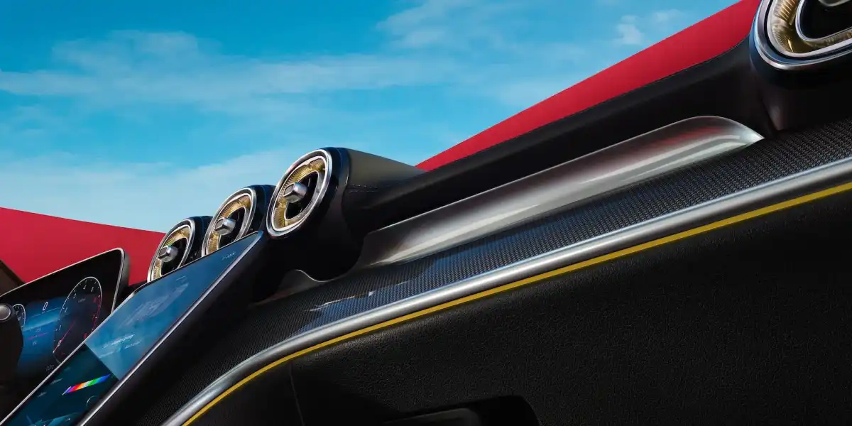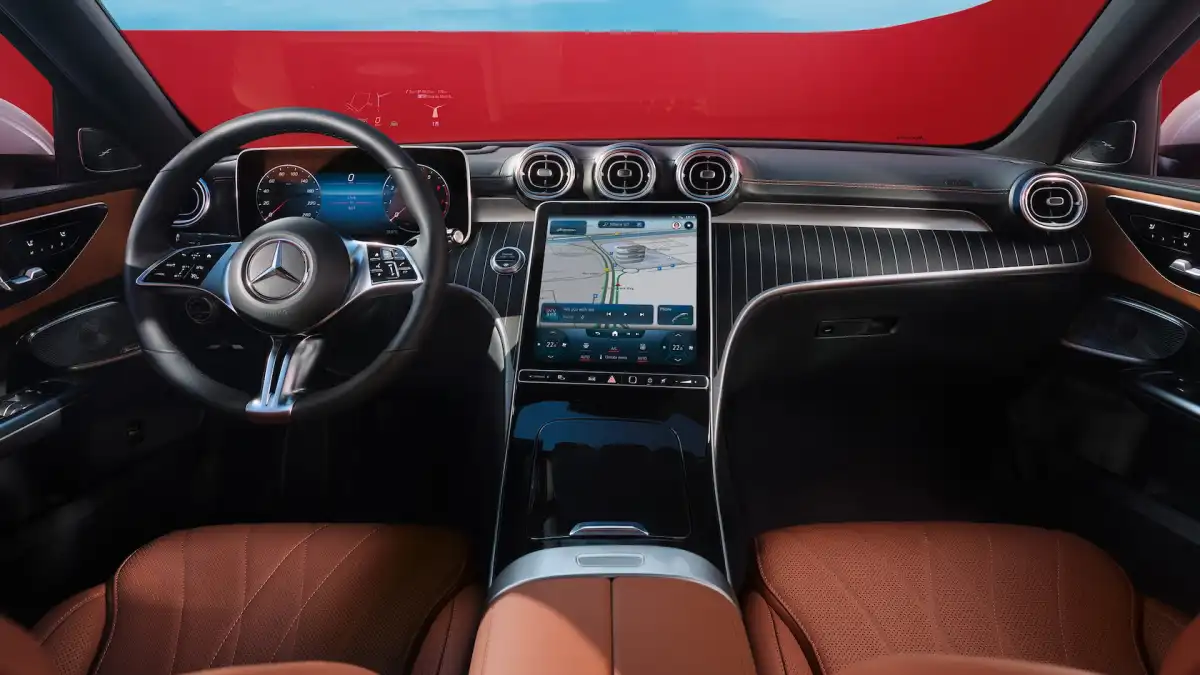 عند دخول C-كلاس، يشعر الركاب وكأنهم في مقصورة من الدرجة الأولى، حيث تم تصميم المقصورة بعناية فائقة باستخدام مواد عالية الجودة مثل الجلد الطبيعي، وخشب المسام المفتوح، ولمسات الألمنيوم المصقول. شاشة المعلومات العائمة، ولوحة العدادات الرقمية بالكامل، والإضاءة المحيطية تضيف لمسة مستقبلية تجعل القيادة أكثر متعة.
