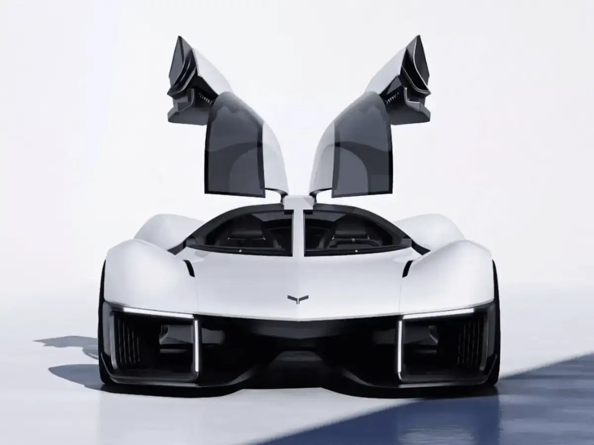 تُفتح أبواب السيارة بطريقة الأجنحة، ما يضفي لمسة درامية عند الدخول إلى المقصورة والخروج منها، حيث تحتضن الأخيرة مقودًا بتصميم مستوحى من عجلة القيادة في أستون مارتن فالكيري. يستلهم التصميم أجواء سيارات الهايبركار البريطانية، التي انطلقت قبل سنوات قليلة على بُعد أقل من 20 كيلومترًا من مركز جنرال موتورز الجديد، ما يعكس بوضوح تأثير البيئة الهندسية المحلية في تشكيل هذا المفهوم الثوري.