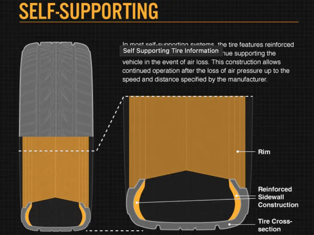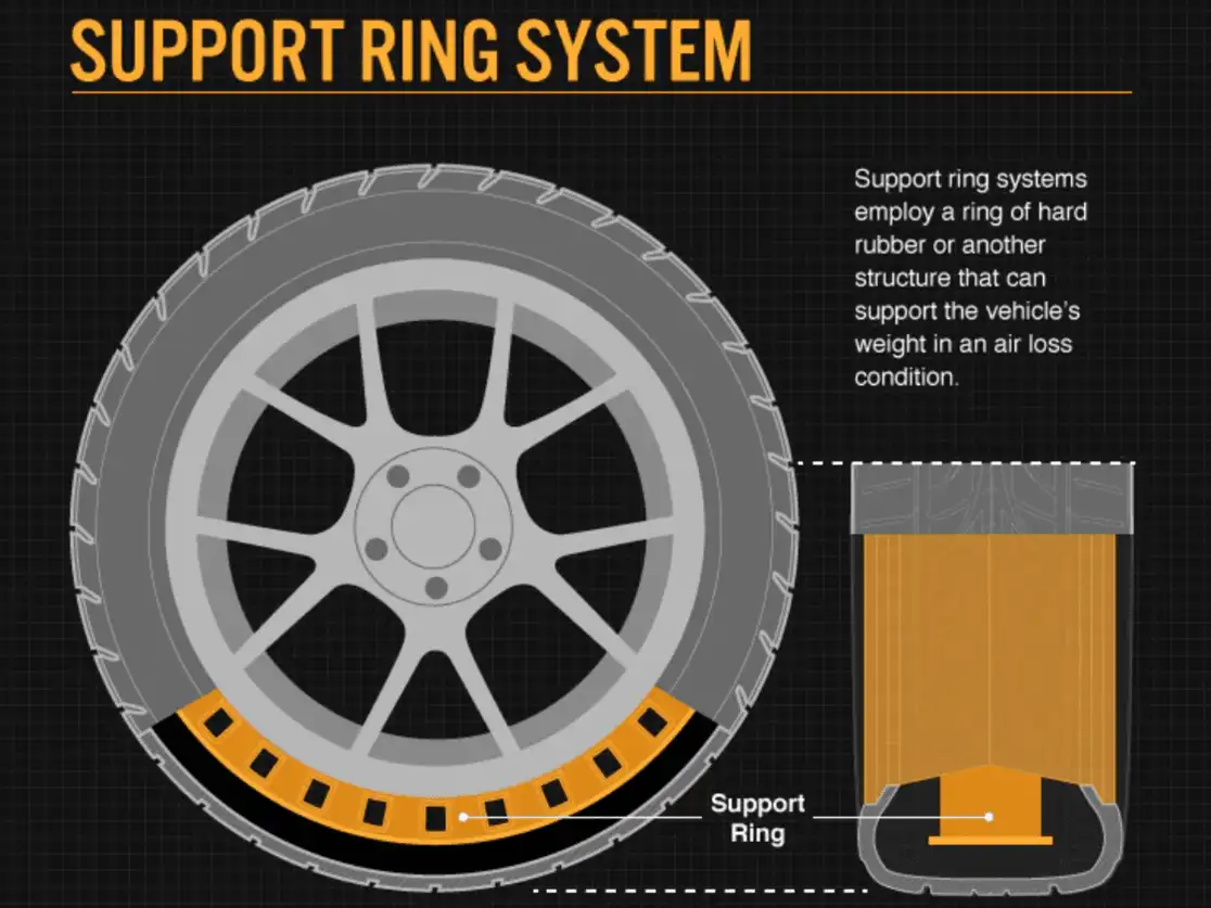 تستخدم بعض الأنواع جدرانًا جانبية معززة بمواد شديدة الصلابة، مما يمنح الإطار القدرة على تحمل وزن السيارة حتى بعد فقدان الهواء. بينما تعتمد أنواع أخرى على حلقة داعمة داخل الإطار مصنوعة من المطاط القوي، والتي تحافظ على استقرار السيارة عند حدوث ثقب. بفضل هذه الابتكارات، أصبح بالإمكان القيادة لمسافات تصل إلى عشرات الكيلومترات بعد فقدان الضغط الهوائي، مما يقلل بشكل كبير من حالات الطوارئ التي قد تواجه السائقين على الطريق.