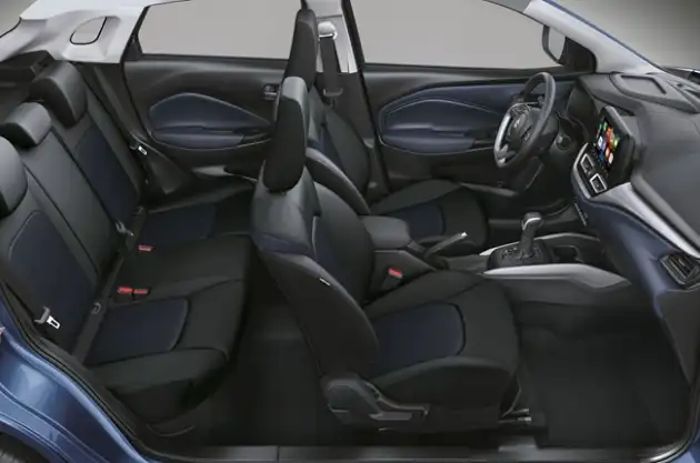 وبالانتقال إلى الداخل، تأتي بالينو GL بمقاعد قماشية وتصميم داخلي نظيف مع أزرار وظيفية جيدة التصميم وسهلة الوصول إليها. يحتوي الكونسول المركزي على شاشة تعمل باللمس مقاس 7 بوصة تدعم ميزات الترفيه الأساسية بما في ذلك اتصال البلوتوث ومنفذ USB، إلخ. نظام تكييف الهواء يدوي.