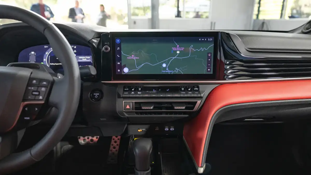 تختلف خيارات الشاشات داخل كامري 2025 باختلاف الفئات. فالشاشة القياسية تأتي بمقاس 8 بوصات وتدعم ربط الهاتف عبر آبل كاربلاي، لتتيح للسائق التحكم بتطبيقاته المفضلة بسهولة. أما في الفئات الأعلى، فتتسع الشاشة إلى 12.3 بوصة، وتقدم دعماً لربط آبل كاربلاي لاسلكيًا، إضافة إلى نظام ملاحة مدمج يعزز تجربة التنقل.