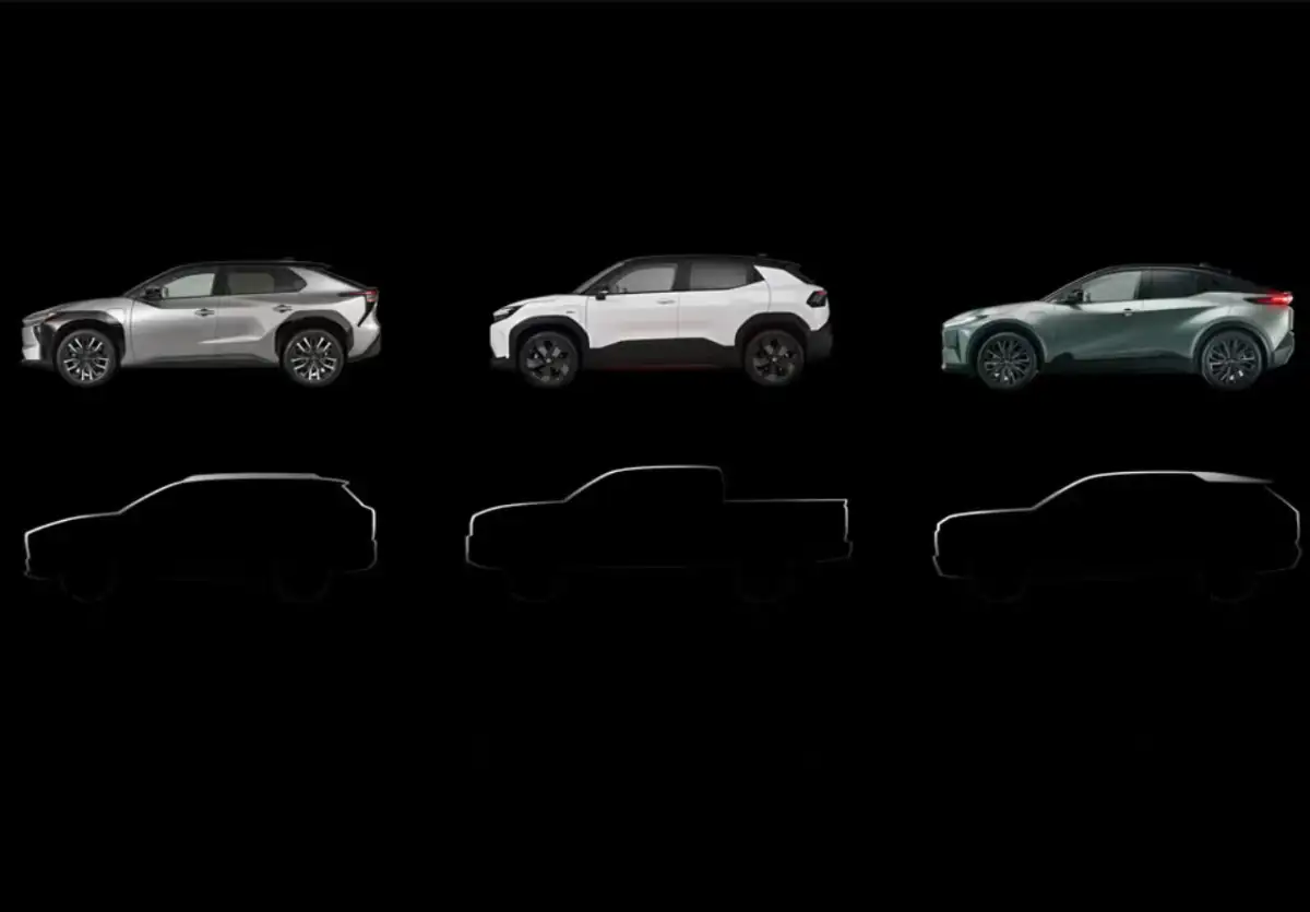 أكدت تويوتا أنها ستقوم قريباً بإطلاق 3 سيارات كهربائية في الأسواق الأوروبية في عام 2026، وشوقت الجماهير بصور تظهر ملامح هذه السيارات. ومع أن الصورة غير واضحة، ولكن يمكن الاستنتاج أن إحداها تبدو مثل السيارة النموذجية لاند كروزر SE 2023، وأخرى تشبه السيارة النموذجية bZ من عام 2021. أما بالنسبة إلى سيارة بيك اب، فلسنا متأكدين مما إذا كانت شاحنة هيلكس كهربائية أم شاحنة جديدة تماماً.