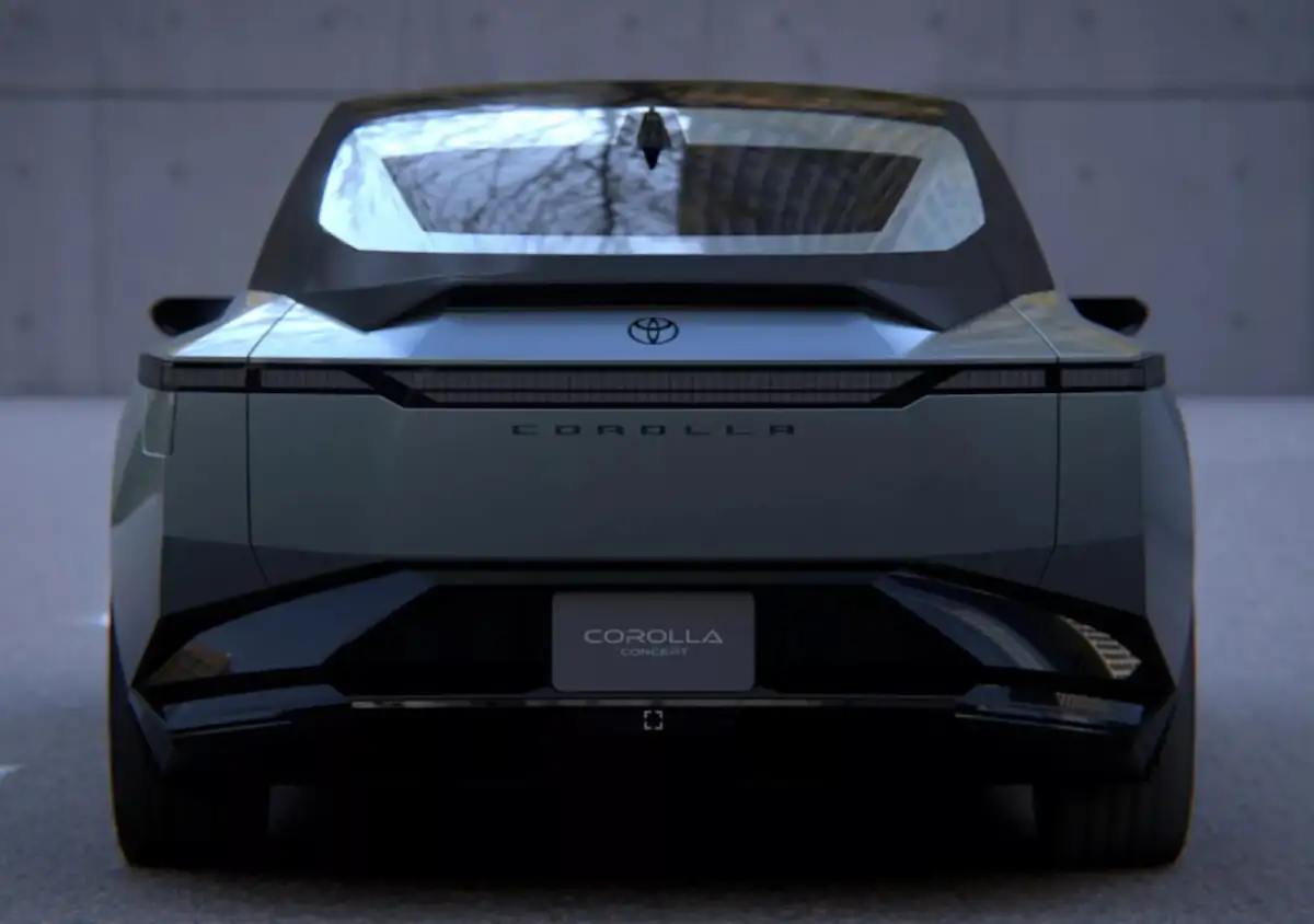 انسيابية شديدة من الهيكل وبروز سبويلر "Ducktail" الخلفي وامتداد أضواء خلفية بيكسلية عريضة مع كتابة كورولا بتأثير رقمي.