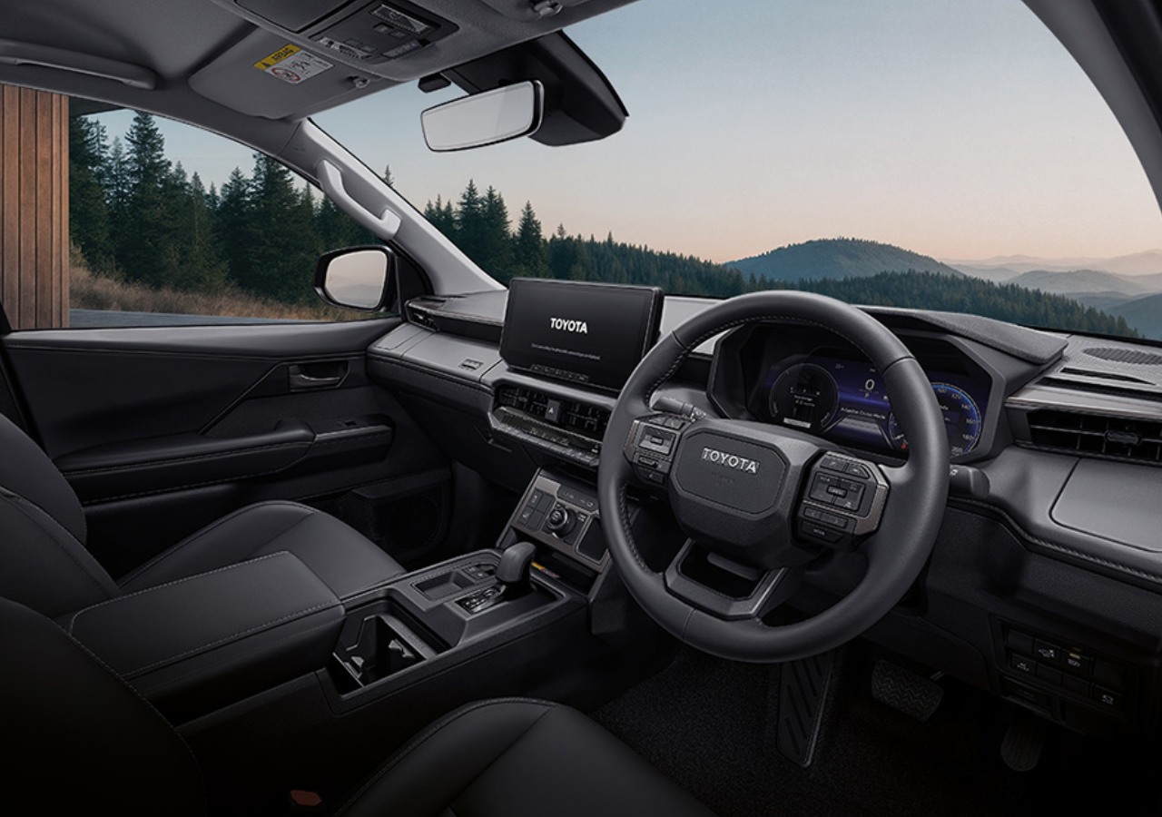 تويوتا تقدم خيارات تقنيات أمان متقدمة كحزمة Toyota Safety Sense (حساسات تصادم أمامية/خلفية، تنبيه الخروج من المسار، مراقبة النقطة العمياء، كاميرات 360، مثبت سرعة متكيف).