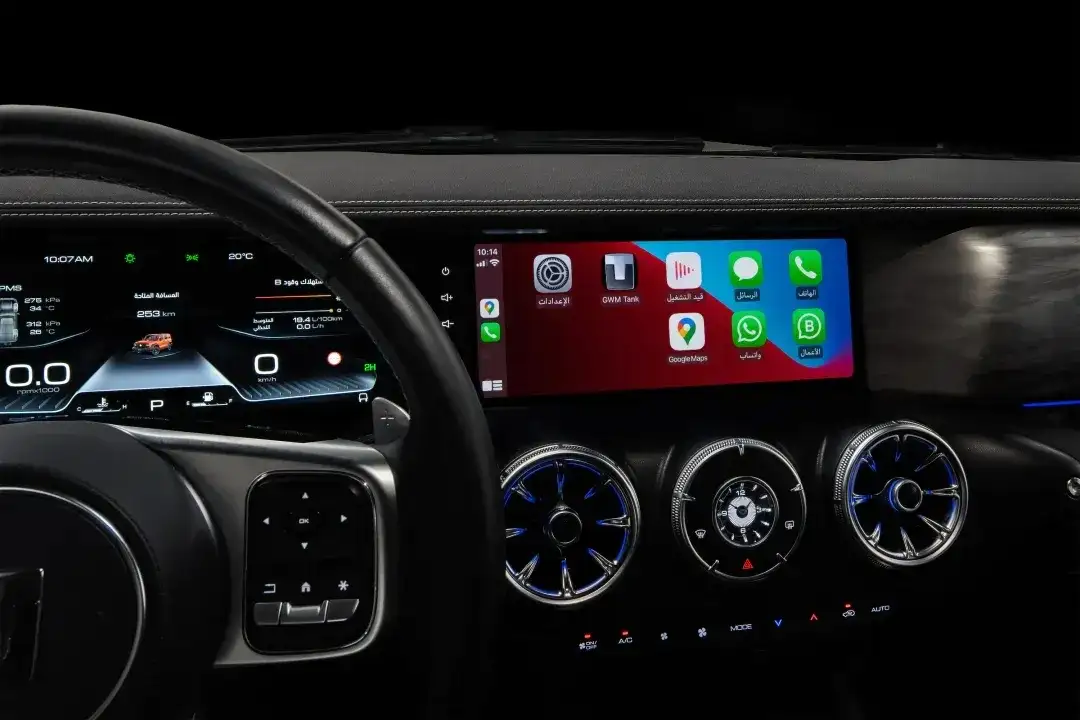 أما المقصورة الداخلية لسيارة تانك 300 فهي مزيج من الكلاسيكية والتكنولوجيا، حيث تعتبر شاشات الاتصال المزدوجة مقاس 12.3 بوصة أبرز ما يميز السيارة، مع شاشة عرض رائعة ودعم تفاعلي متعدد الوظائف، ويستخدم الكونسول الوسطي بشكل مكثف للجلد واللمسات المعدنية، ومع فتحات التهوية المستديرة، فإنه يخلق تأثيراً بصرياً شخصياً للغاية.