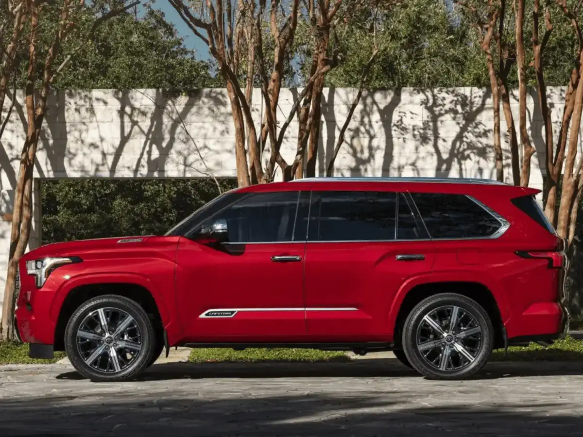 تعتلي فئة كابستون قمة تشكيلة تويوتا سيكويا 2025، حيث تتألق بعجلات ضخمة قياس 22 بوصة، وشبك أمامي مطلي بالكروم يضيف حضورًا مميزًا على الطريق. وتقدم المقصورة الداخلية تجربة راقية بلمسات فاخرة، ومقاعد أمامية وخلفية مدعومة بخاصية التدفئة والتبريد، مع شاشة عرض أمامية قياس 10 بوصة تعزز راحة القيادة، وتوزيع شارات كابستون داخل المقصورة وخارجها لتمييز الفئة.