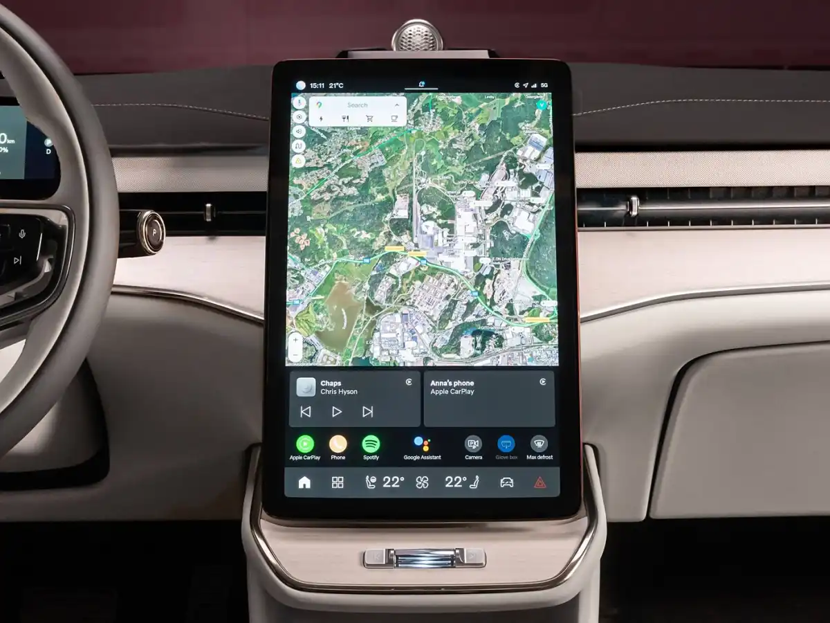 تعمل الشاشة الوسطية بواجهة جوجل وخدمات Waze للملاحة، وتدعم الأوامر الصوتية، كما تتضمن نظام صوت فاخر من Bowers & Wilkins بـ 25 مكبرًا، مما يمنح تجربة استماع استثنائية. بالإضافة إلى ذلك، زودت السيارة بنظام استشعار متقدم للركاب، يساعد على منع إرهاق السائق والتأكد من عدم ترك الأطفال داخل السيارة.