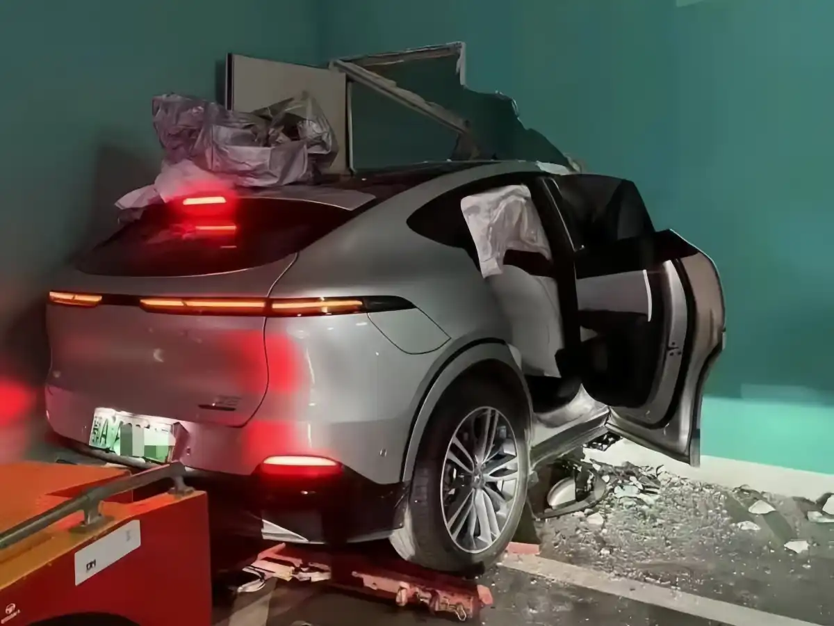 كان أحد المستهلكين الصينيين يجرب قيادة سيارة SUV كهربائية. وبمجرد أن شغَّل السيارة وكان يستعد لمغادرة موقف السيارات، أدى خطأ في التعامل إلى اصطدام السيارة مباشرة بجدار الموقف. تناثرت الطوب والأنقاض على الأرض، وتعرضت السيارة لأضرار جسيمة.
