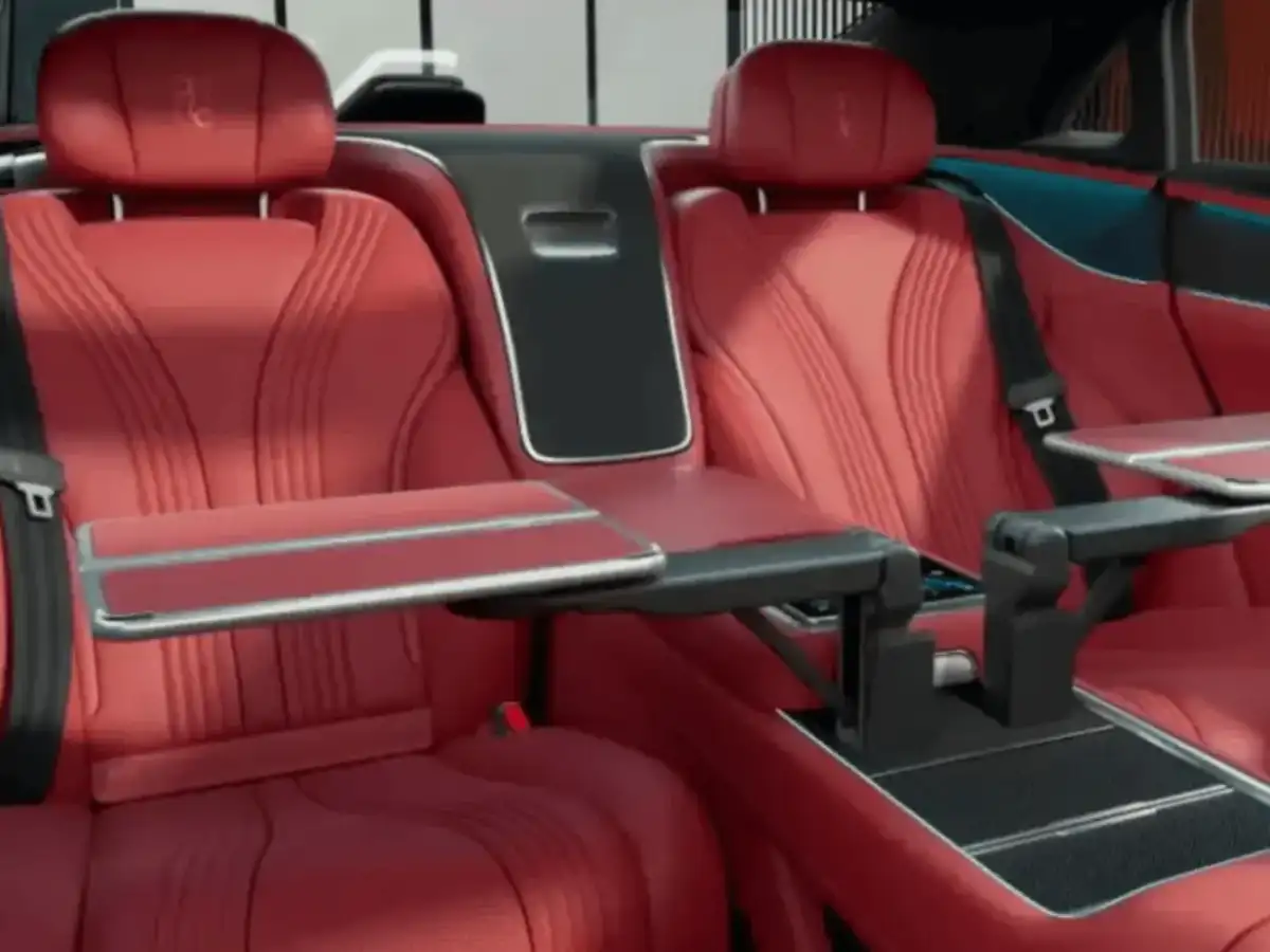 يستفيد ركاب المقعد الخلفي من شاشتين بحجم 12.8 بوصة وطاولات قابلة للطوي مع ثلاجة صغيرة تحافظ على برودة المشروبات طوال الرحلة. وتدعم المقاعد الأمامية تعديل 20 وضعية مع وظائف التدفئة والتهوية والتدليك، في حين تظهر المقاعد الخلفية مزايا ذكية عبر مساند تستجيب لدرجات الحرارة لتحافظ على راحة الركاب في مناخ الخليج الحار. ويثري التجربة نظام صوتي متكامل يضم 23 مكبِّر صوت ينقل الأداء الصوتي بانسيابية وحيوية عالية.