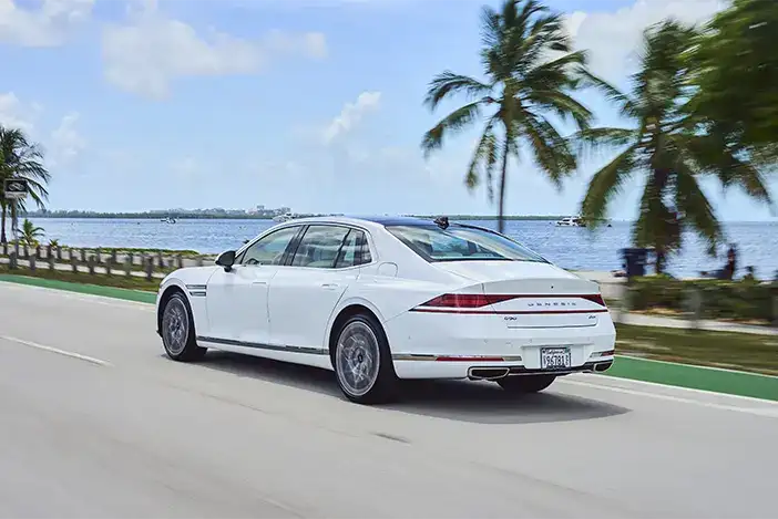 تضع جينيسيس G90 نفسها في مواجهة مباشرة مع عمالقة الفئة مثل مرسيدس S-Class وبي إم دبليو الفئة السابعة، حيث تقدم تجربة فاخرة راقية مع تقنيات متطورة، ولكن بسعر أقل بكثير من منافساتها الألمانية. يأتي التصميم الخارجي بمظهر مهيب يعكس الأناقة والرقي، بينما تمنح المقصورة الداخلية إحساسًا لا يضاهى بالراحة والتطور، ما يجعلها من بين أفضل ما يمكن اقتناؤه في فئة السيدان الفاخرة.