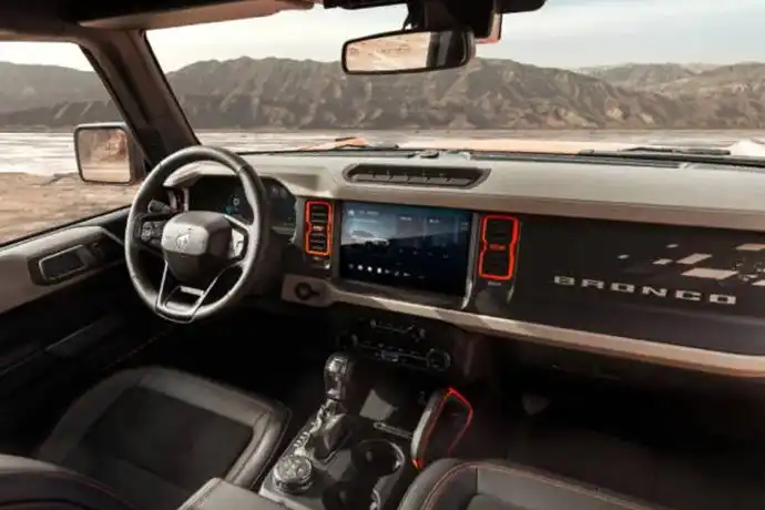 المقصورة الداخلية في فورد برونكو 2023 تم تصميمها بعناية لتوفير الراحة للسائق والركاب على حد سواء. المقاعد مُزودة بخيارات التدفئة والتبريد، مما يجعلها مناسبة للقيادة في جميع الفصول. كذلك، المساحات الواسعة داخل السيارة تُسهل الأمور خاصة في الرحلات العائلية. حاملات الكؤوس ومساحات تخزين الأغراض أضافت قيمة عملية إضافية لهذه السيارة.