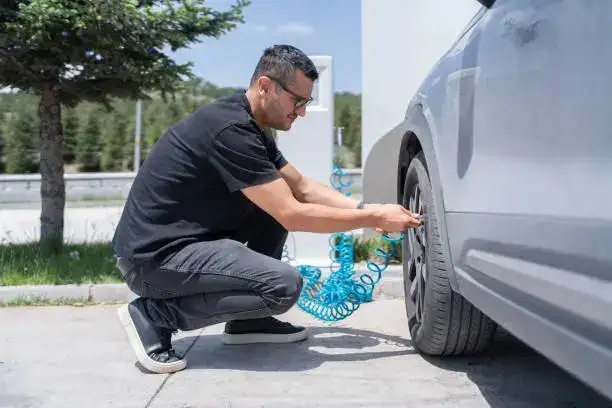 ابحث عن الظل أولاً: إذا أمكن، أوقف سيارتك في الظل، كما هو الحال في مرآب مول الإمارات، للسماح لإطاراتك بالتبريد قليلاً قبل النفخ. يوفر هذا قراءة ضغط أكثر دقة. هذه خطوة أولى عملية لجميع السائقين، مما يضمن الراحة أثناء العملية.